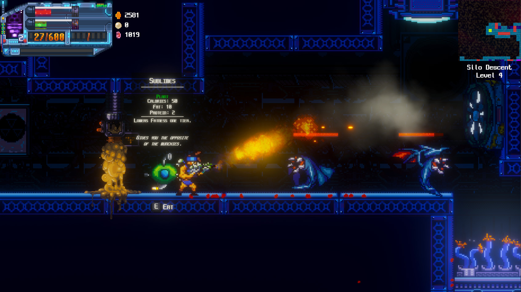 Наслаждайтесь разрушением в этой ролевой игре-стрелялке! Вы должны поесть здесь, чтобы улучшить своего персонажа, оружие и навыки! Ешьте странных существ, чтобы добавлять новые записи в загадочную коллекцию DarwinCorp. Катализируйте производство ферментов в своем животе, пожирая противников! Исследуй три огромных дерева съеденных навыков и помни, что ты то, что ешь!
