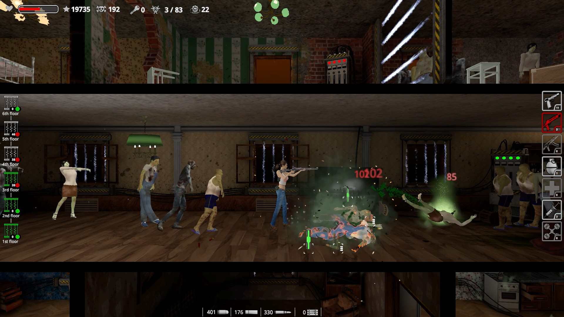 Слэшер-игра с элементами ужаса и выживания. 3D-экшн с видом на боковую камеру старой школы. Предотвратите вторжение зомби в здание. Уничтожайте врагов, собирайте предметы, активируйте снаряжение, сражайтесь с боссами, создавайте предметы, находите секретные локации, получайте удовольствие!
