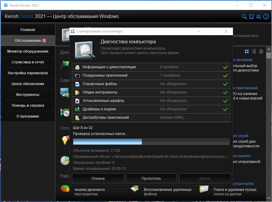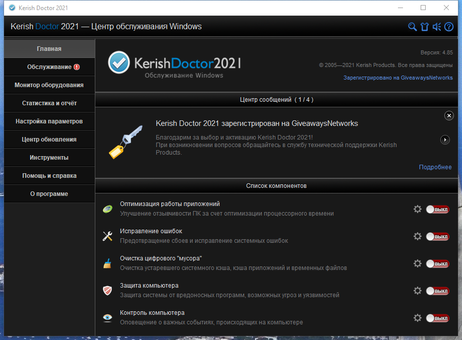Kerish Doctor - это комплексное решение, разработанное для вашего компьютера. В программе накоплены самые перспективные достижения в этой области. Благодаря продвинутым алгоритмам программа может предотвращать сбои операционной системы в режиме реального времени, а также надежно исправлять ошибки реестра и многое другое.